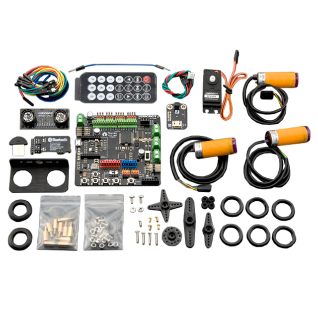 | 포함 된 MCU / MPU 보드 | DFRobot Romeo V2 | 내용 | Board(s), Cable(s), Chassis, Components, Hardware, Sensor(s), Servo(s), Wheel(s) |